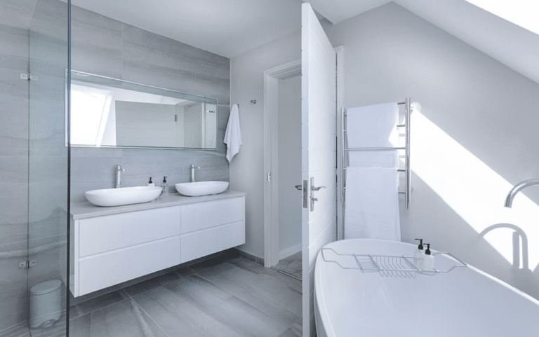 If the 90s were all about…experimenting with color and a bit of a 70s revival, the 2020s are much more focused on neutrals and timelessness. The easiest way to modernize a dated bathroom is, by far, changing its “face” by introducing more neutral colors. White can never steer you wrong, but grays can also find their place in this space.